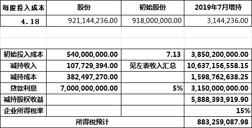 $光启技术(SZ002625)$ 1、银行贷款已全部归还。2、企业所得税按15%优惠税率。3、贷款按70亿、贷款利率平均按5%计算。4、西藏映邦入股初始成本7.13元,送股后成本摊薄4.18元。5、2020年12月至今减持股数3.825亿股。综上企业所得税预计在9亿附近。