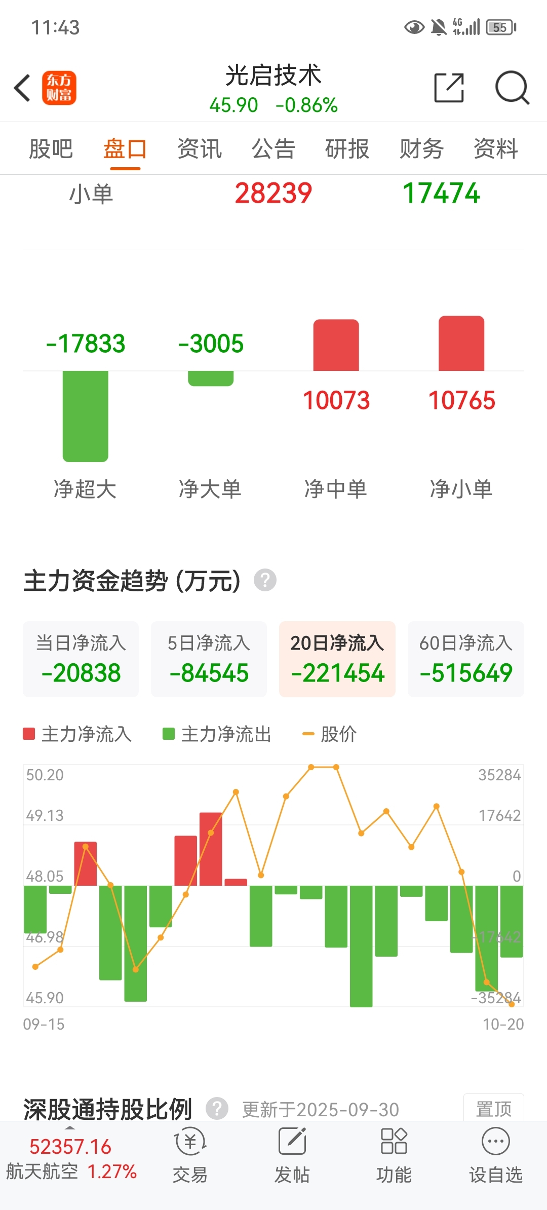 $光启技术(SZ002625)$ #收盘点评# 看60天资金流向,和他这次减持的总金额是不是相差不大大。。。细思极恐!