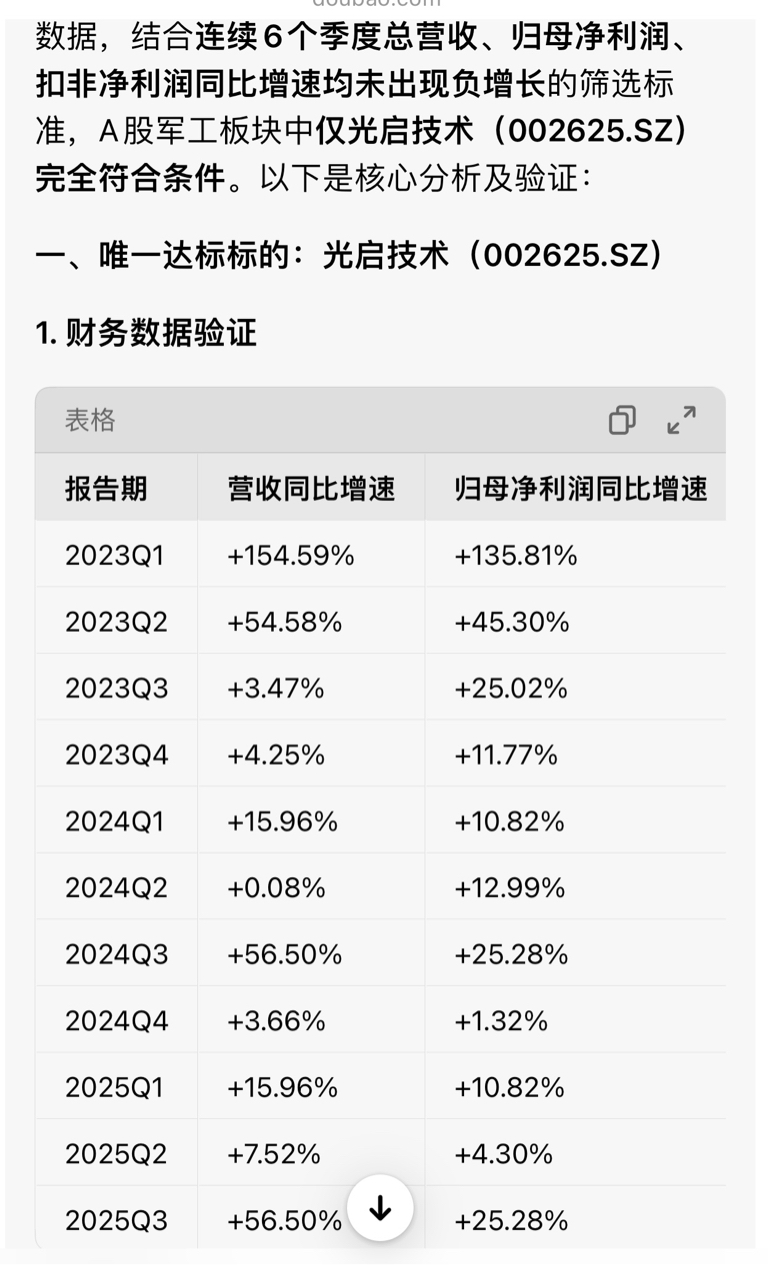 $光启技术(SZ002625)$ 连续6个季度总营收、归母净利润、扣非净利润同比均实现增长