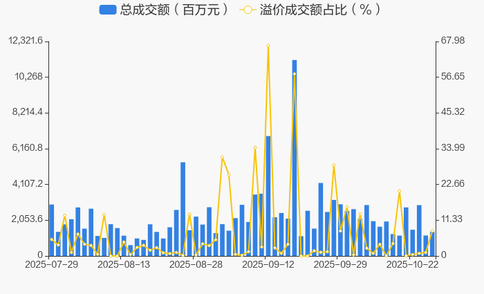 2025年10月27日沪深两市62只个股发生112笔大宗交易,共成交13.81亿元。其中,沪市26只个股共50笔大宗交易,总成交额为6.98亿元;深市35只个股共61笔大宗交易,总成交额为6.79亿元。沪指当日收盘报3996.94点,上涨1.18%,成交金额1.04万亿元。