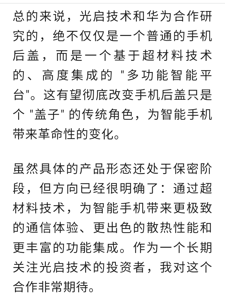 光启技术超材料,除了应用在华为的智能汽车检测外,还于华为手机和笔记本的技术提升有