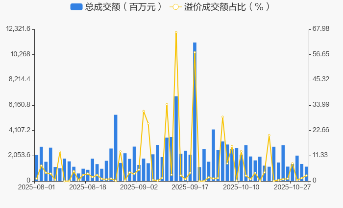 2025年10月30日沪深两市46只个股发生111笔大宗交易,共成交11.71亿元。其中,沪市21只个股共51笔大宗交易,总成交额为4.31亿元;深市22只个股共56笔大宗交易,总成交额为6.94亿元。沪指当日收盘报3986.90点,下跌0.73%,成交金额1.07万亿元。
