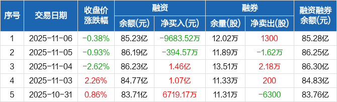 光启技术:融资净偿还9683.52万元,融资余额85.23亿元(11-06)