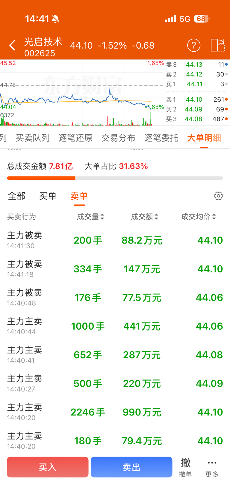 $光启技术(SZ002625)$ 哈哈哈哈,不行,我得卖了,感觉明天还要挨打,今天主力在抢跑卖
