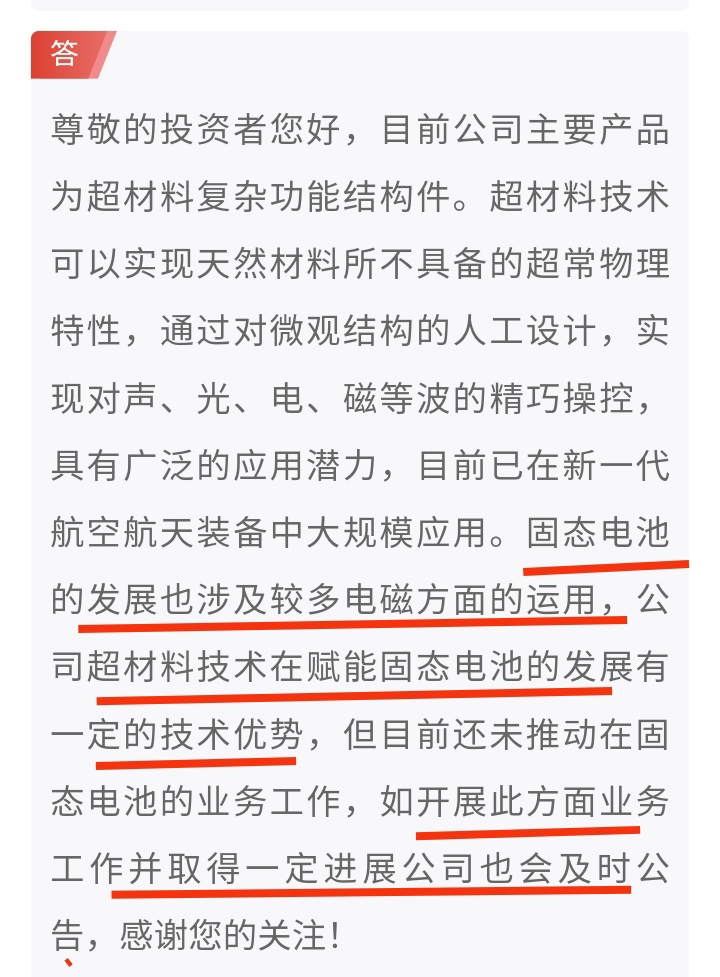 假如,光启技术超材料用于固态电池,又是星辰大海。等公告吧。