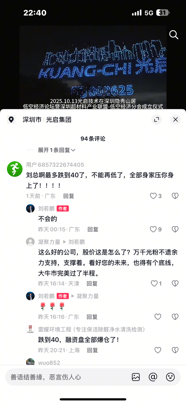 $光启技术(SZ002625)$ 希望你说到做到,刘董