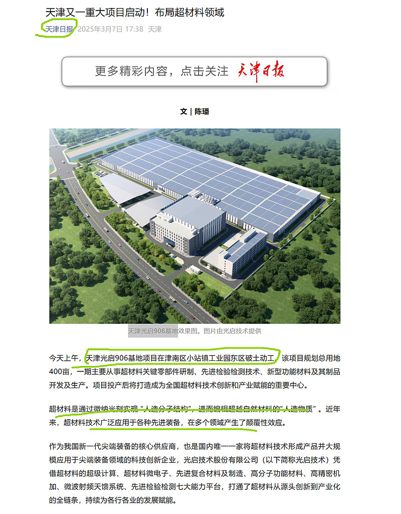 并于2025年10月正式投产。建成后将成为超材料领域最大规模的主基地