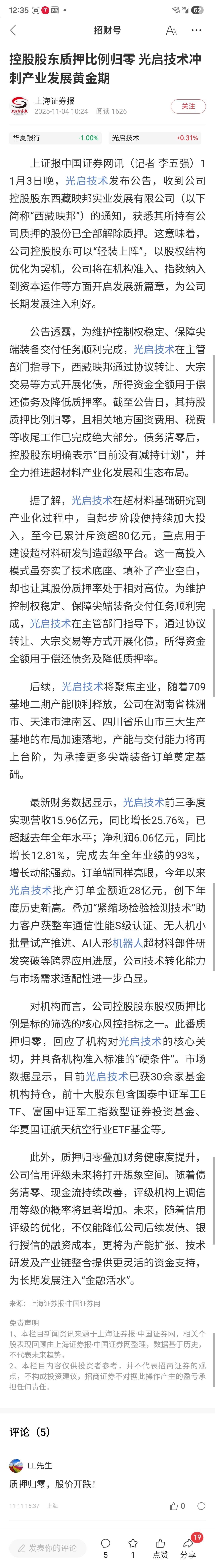 $光启技术(SZ002625)$ 无债一身轻