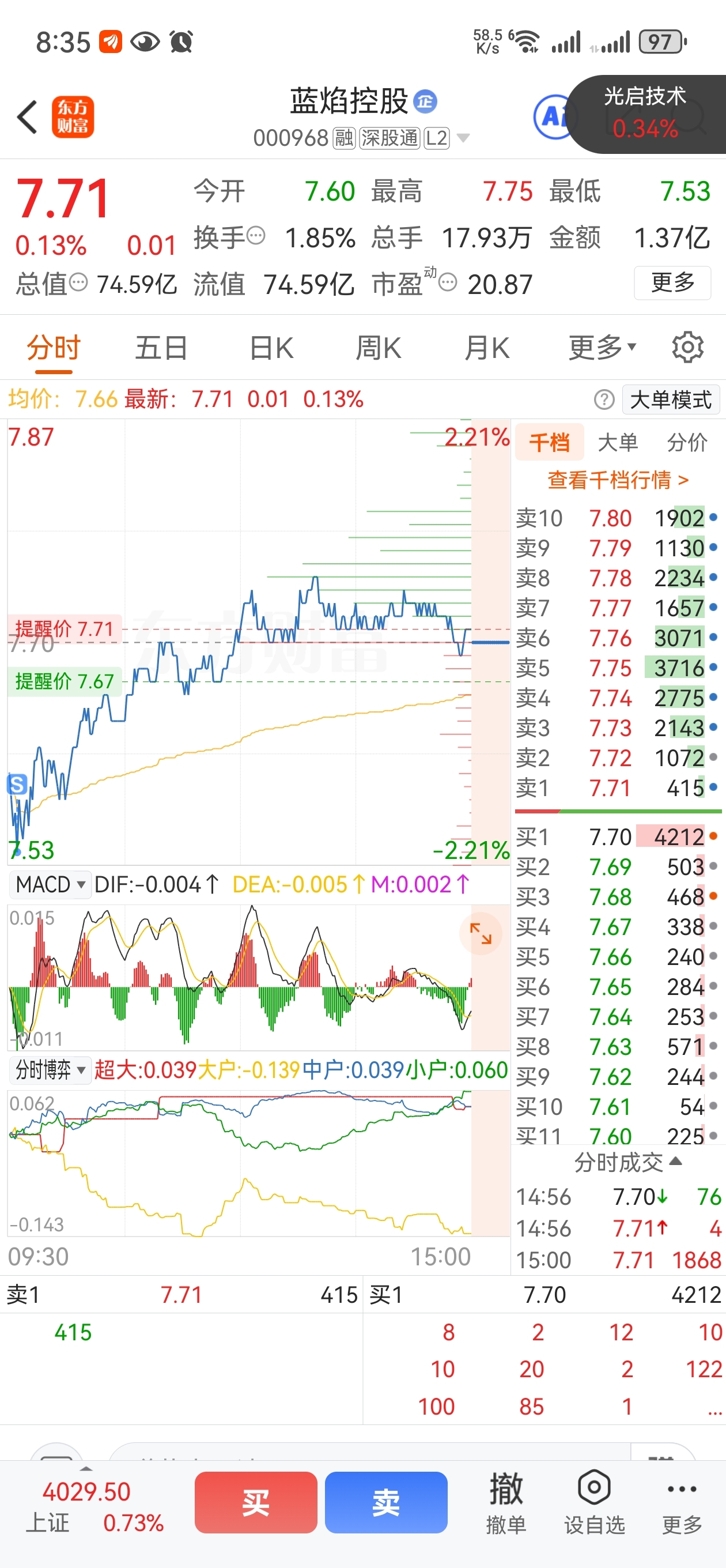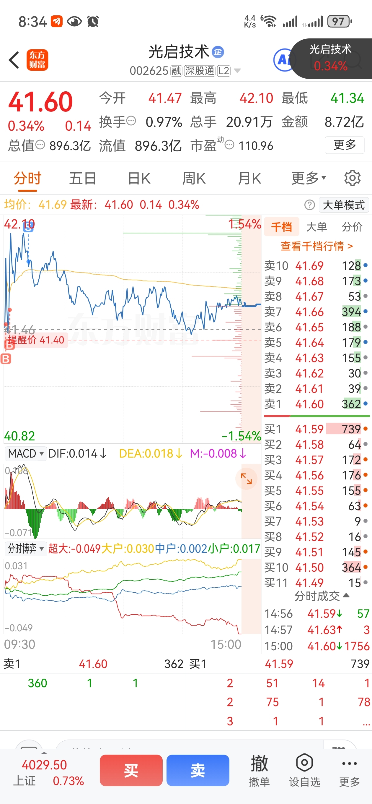 往下不止T出回接41.52—41.18(看有没破这个支撑)—40.89(在看回接这个位置),日内一般破位或者上升得多我都会等下一波再做T出或者回接,这几天出来去了蓝焰控股,为了反抽光启亏了点出来
