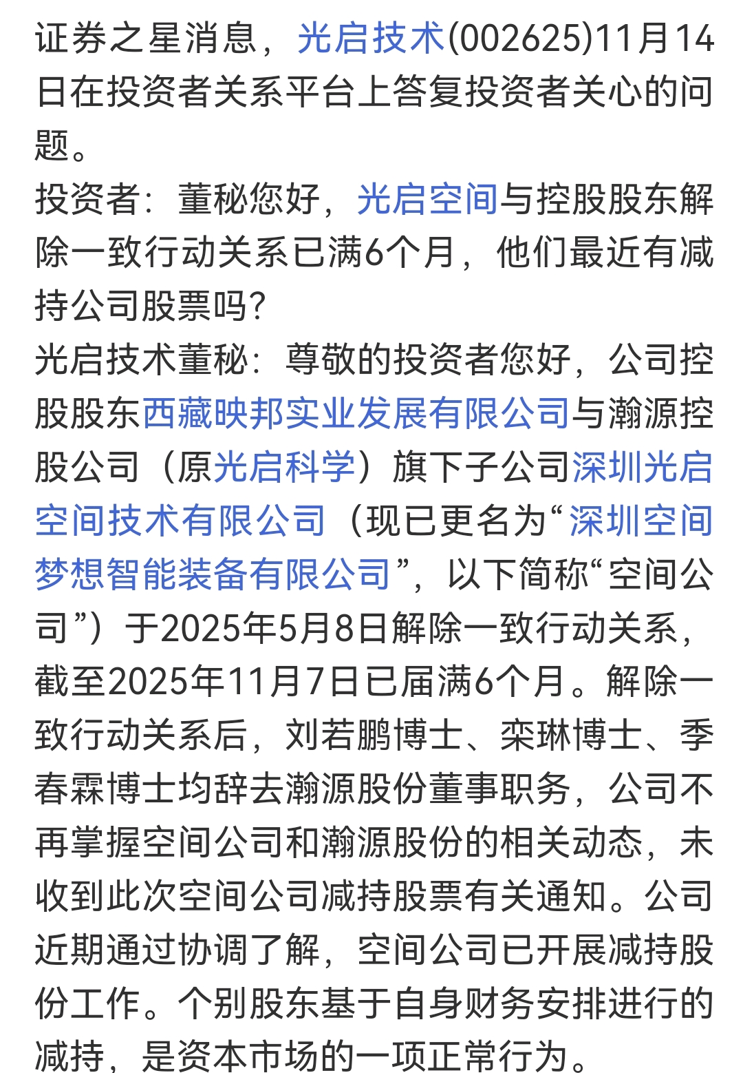 $光启技术(SZ002625)$ 又减持了。还搁那100 200的呢。股东自己都不信,韭菜们信的死心塌地,周一开门低开5个点