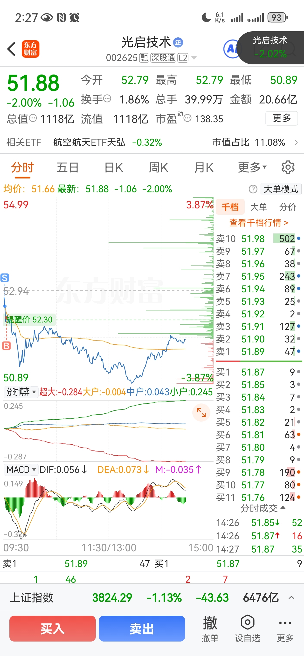 早上看了隔夜的富时A50和中国金龙指数下跌,有点恐慌做了点操作,也按照52.30