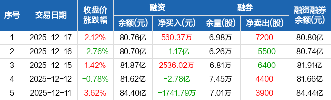 光启技术:融资净买入560.37万元,融资余额80.76亿元(12-17)