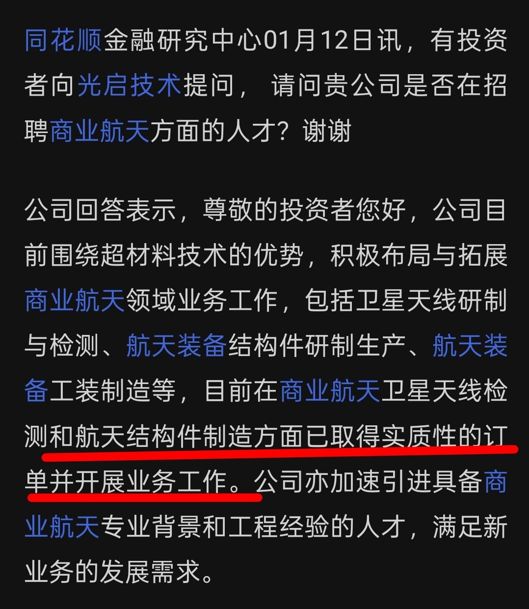 公司实锤了!商业航天卫星天线和航天结构件订单已有,只是需要时间转投产放量后,成为公司又一新的利润增长点!