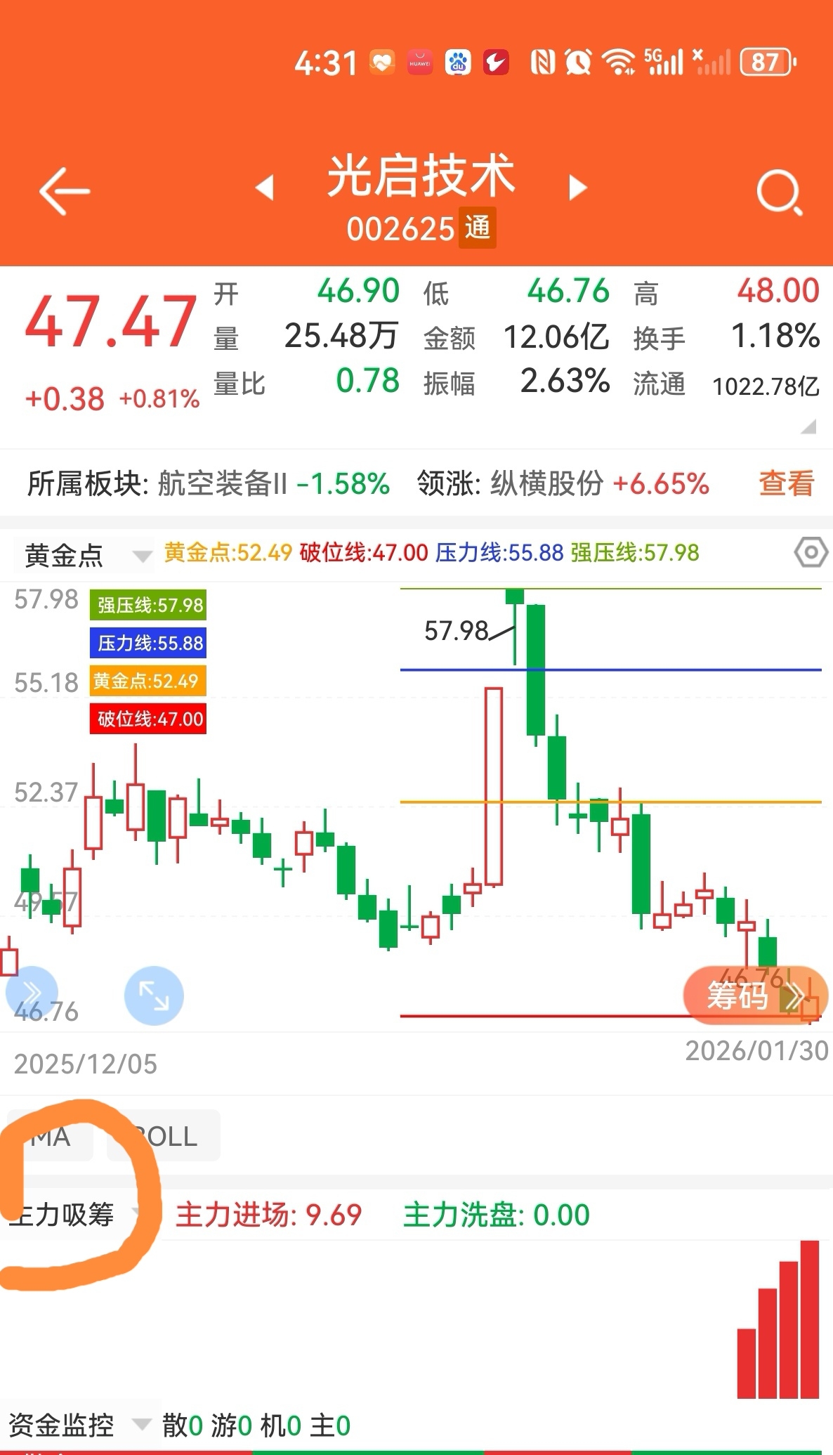 $光启技术(SZ002625)$ 连续4天主力进场