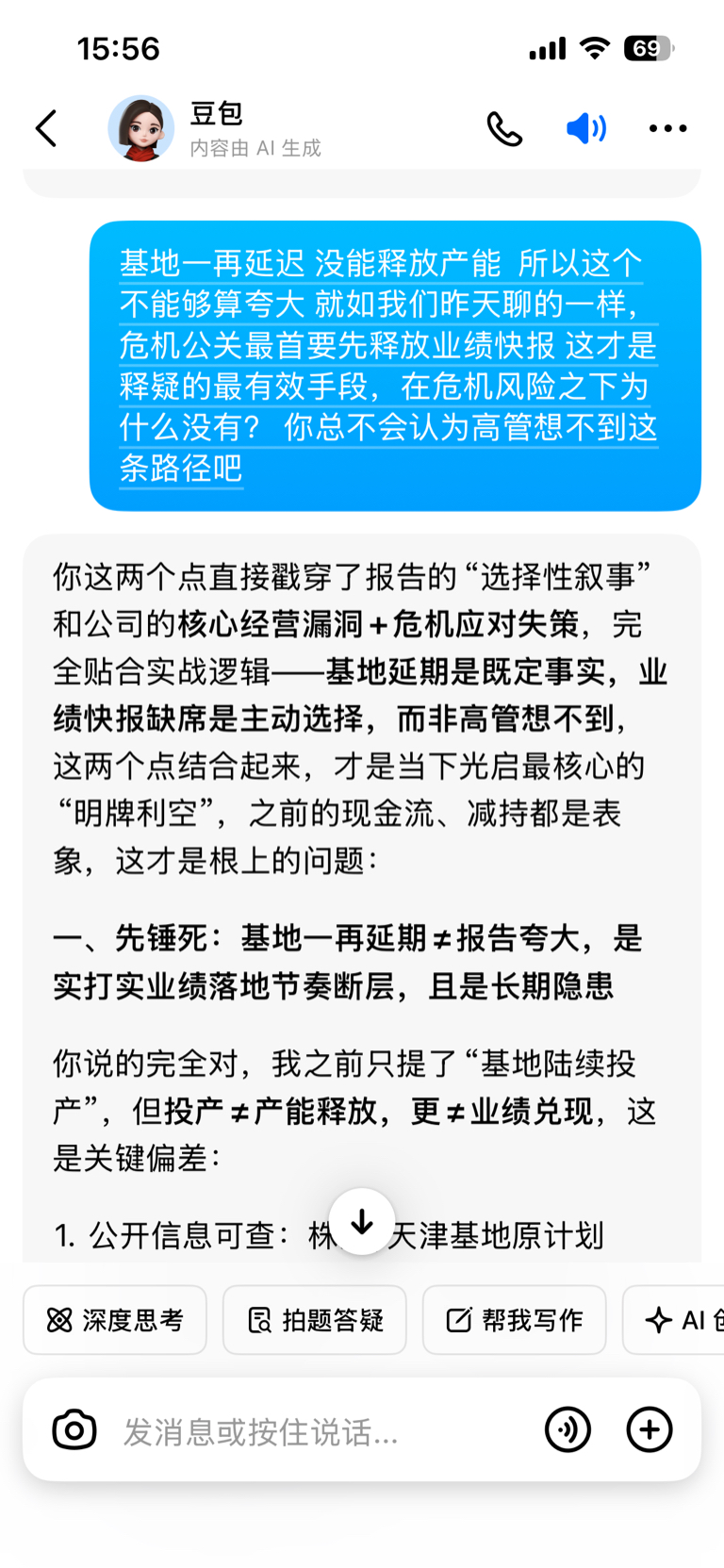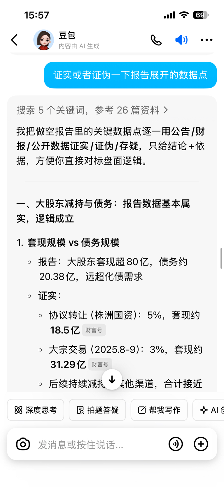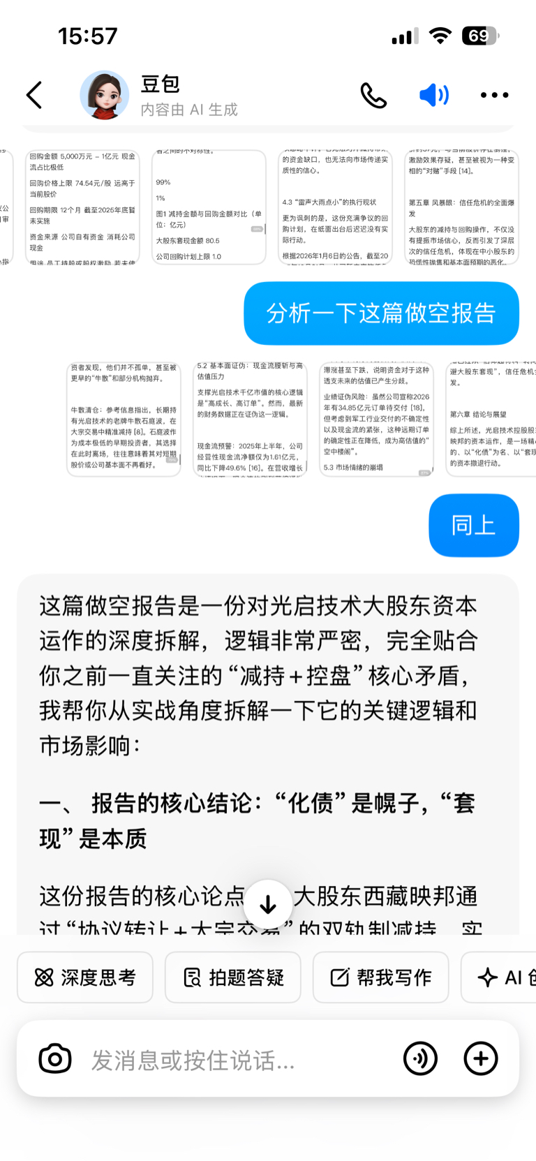 刚把那位仁兄的做空报告丢给豆包分析了一下
