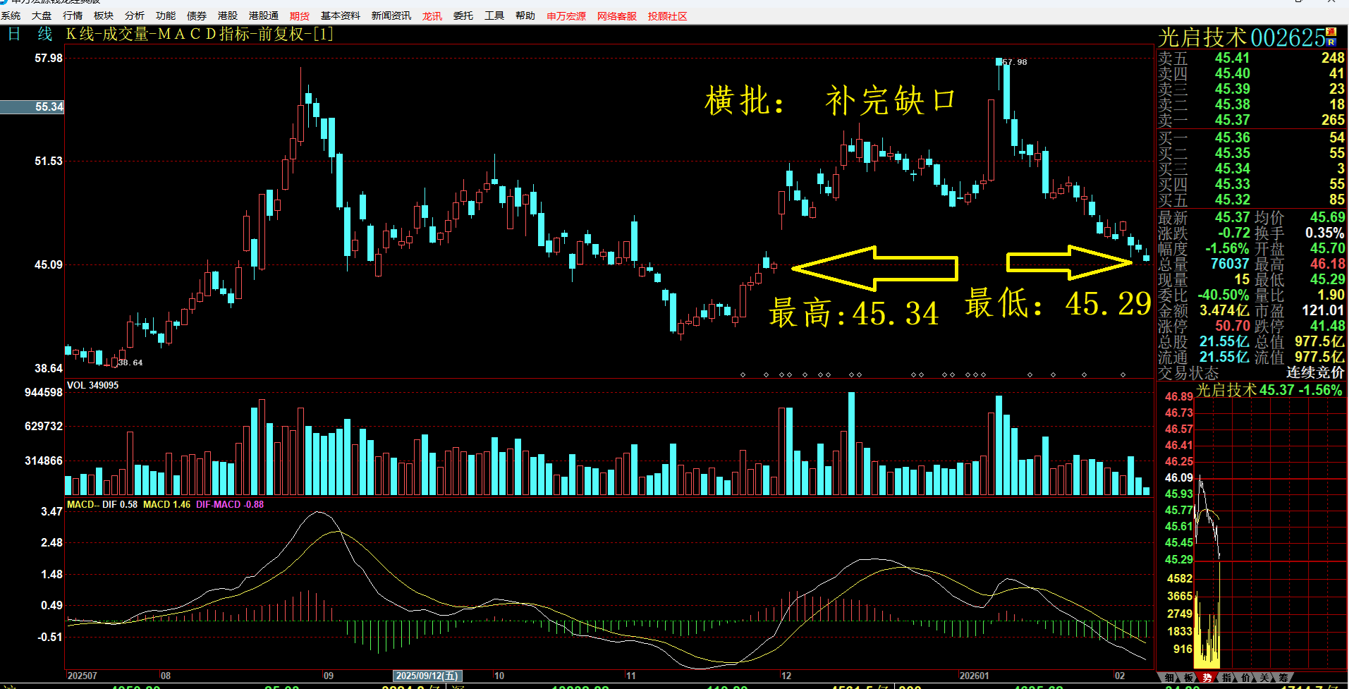 光启已经完成了战术上的补完 47.29 到 45.34 的缺口