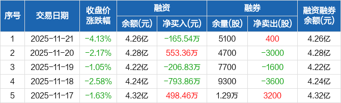 金达威:融资净偿还165.54万元,融资余额4.26亿元(11-21)