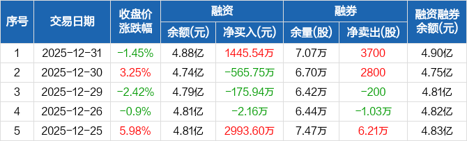 金达威:融资净买入1445.54万元,融资余额4.88亿元(12-31)