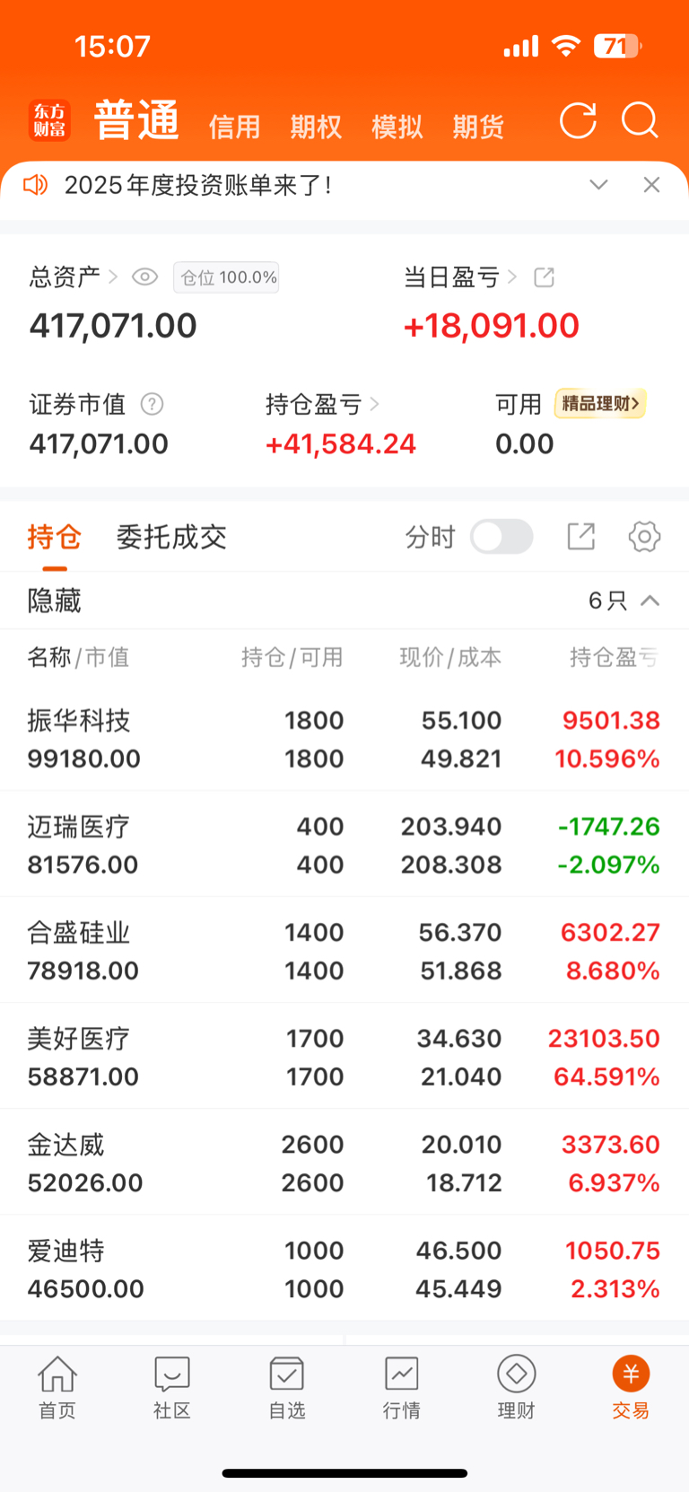 $金达威(SZ002626)$ $振华科技(SZ000733)$ $美好医疗(SZ301363)$ 今天继续吃肉,不需要在乎任何人的看法也不会教任何人去操作,每个人性格不同因此要走的路不一样,只有找到自己最适合的交易模式,方可稳定盈利。我会每天都实盘公布,只为记录炒股日常以及感悟