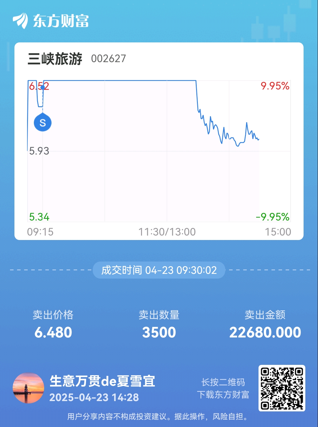 温馨提示: 1.根据《证券法》规定,禁止编造、传播虚假信息或者误导性信息,扰乱证券市场;2.用户在本社区发表的所有资料、言论等仅代表个人观点,与本网站立场无关,不对您构成任何投资建议。用户应基于自己的独立判断,自行决定证券投资并承担相应风险。《东方财富社区管理规定》