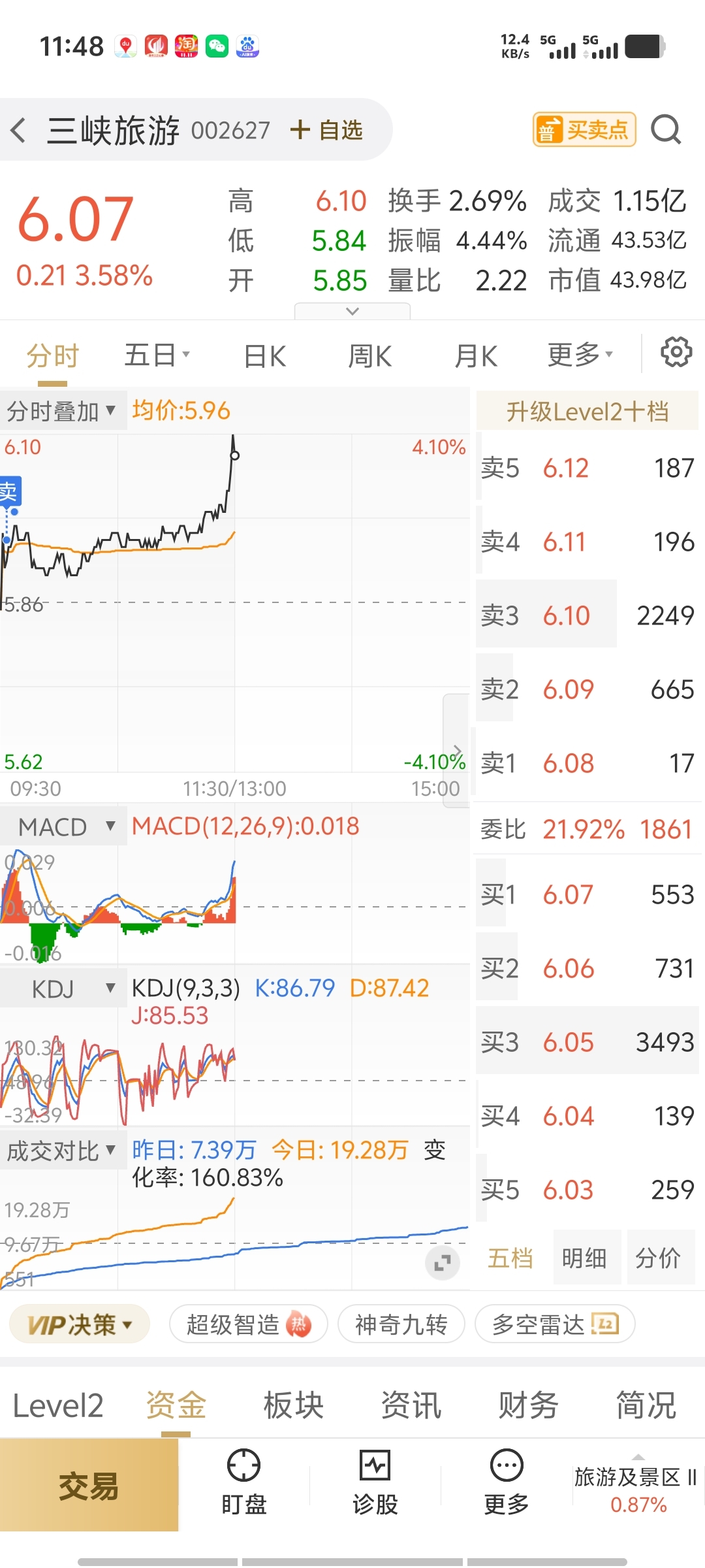 $三峡旅游(SZ002627)$ 喔,一卖就涨,汤也喝不到