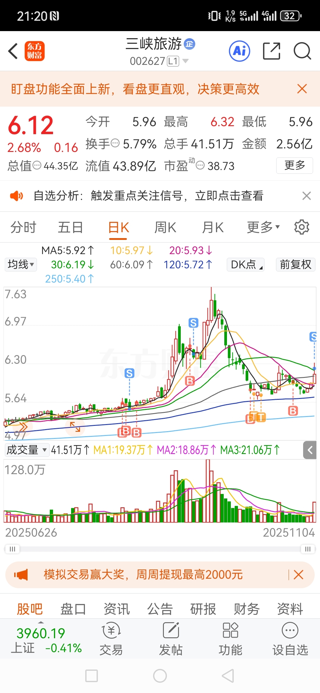 $三峡旅游(SZ002627)$ 看评论今天跑的人不少