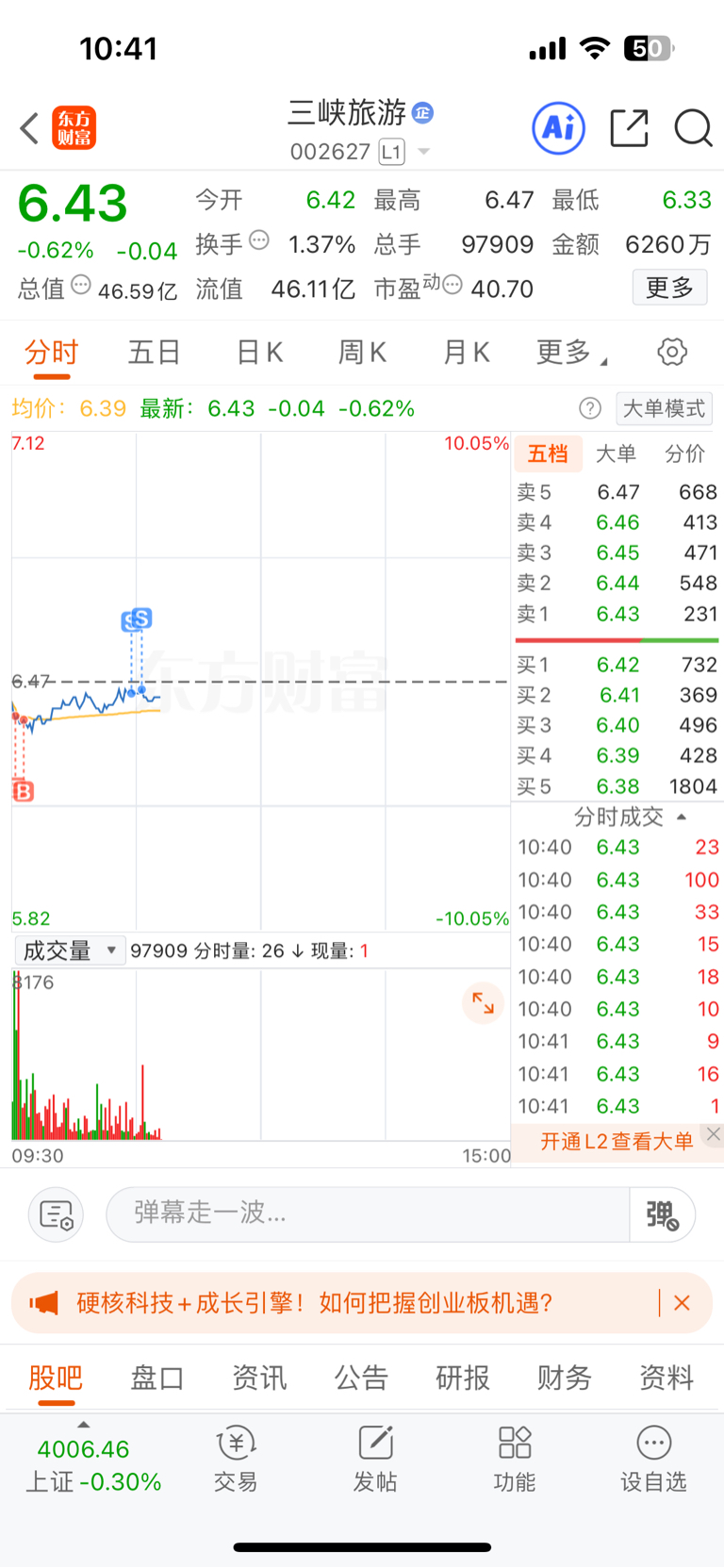 $三峡旅游(SZ002627)$ 虽然亏今天有加仓了,看情况不对有出了,买三峡真的是心惊肉跳
