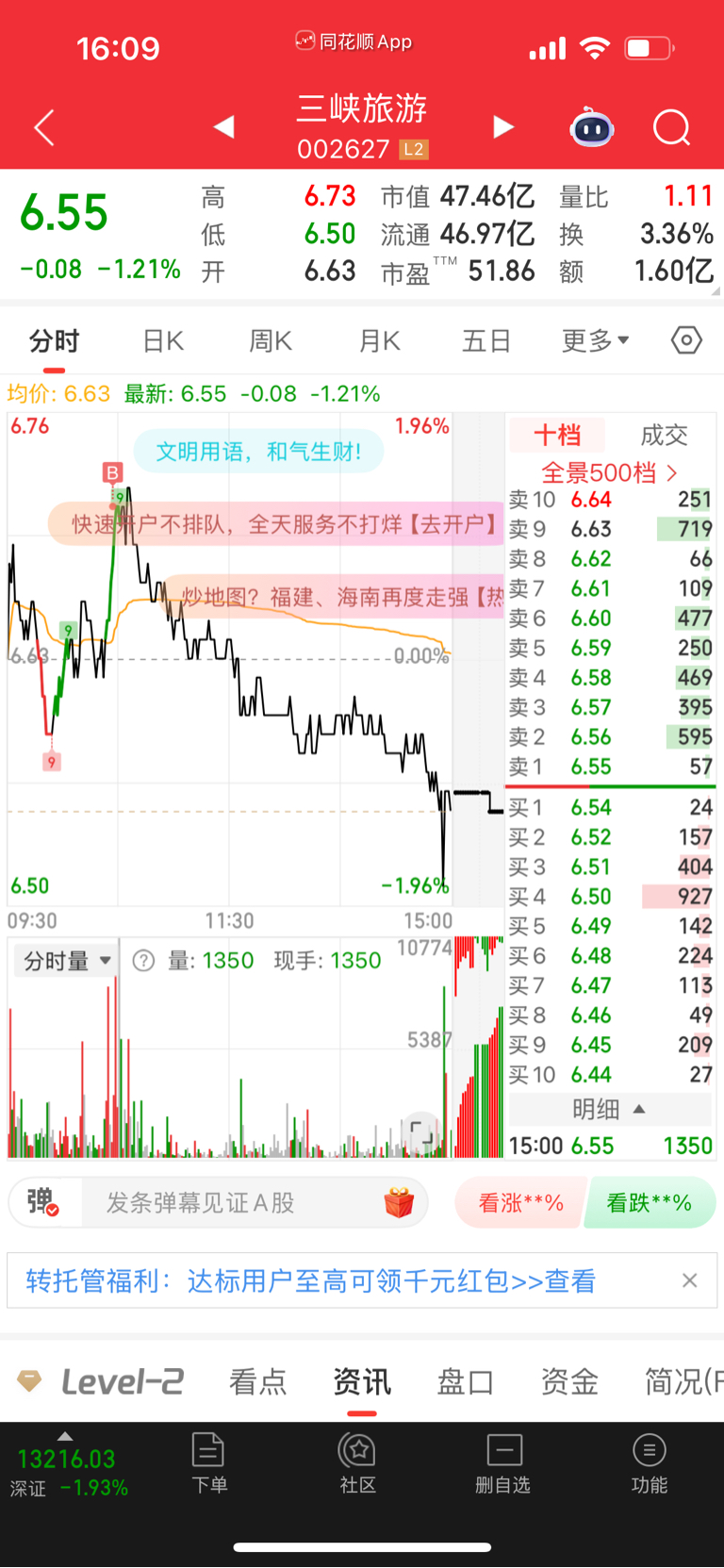 $三峡旅游(SZ002627)$ 追在最高点,尾盘有考虑过反T控仓,结果放弃,不差这点了