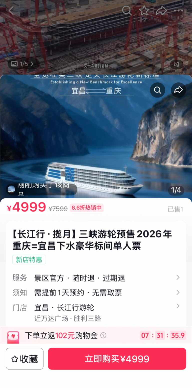 【长江行•揽月】三峡游轮预售2026年重庆=宜昌的船票+拥有宜昌规模最大设施最新