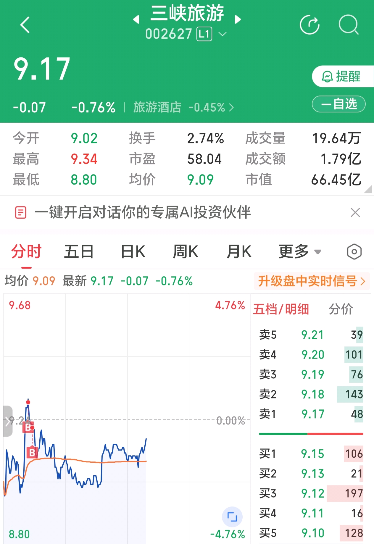 $三峡旅游(SZ002627)$ 买在了高点!扎心呀