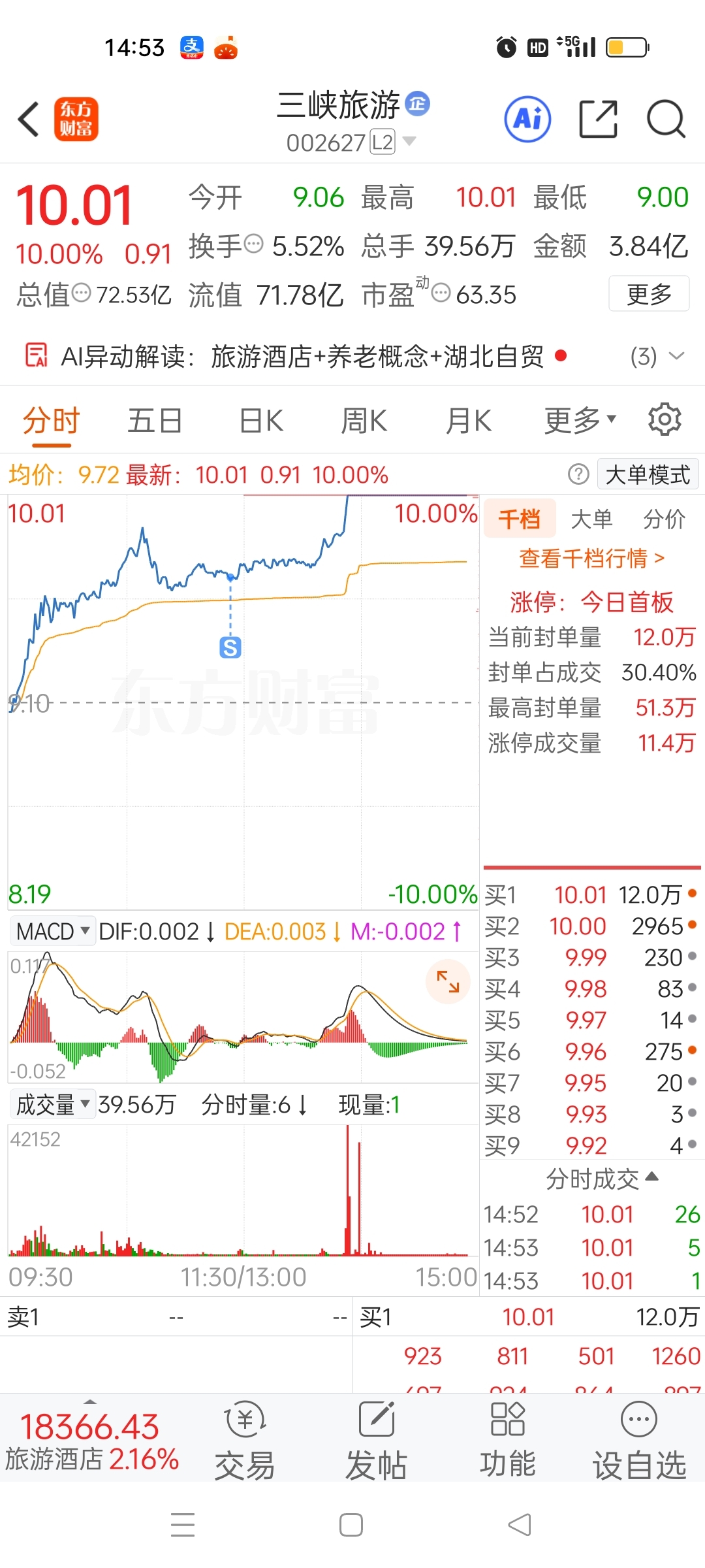 $三峡旅游(SZ002627)$ 我去,已卖就飞了!真的太炸了!