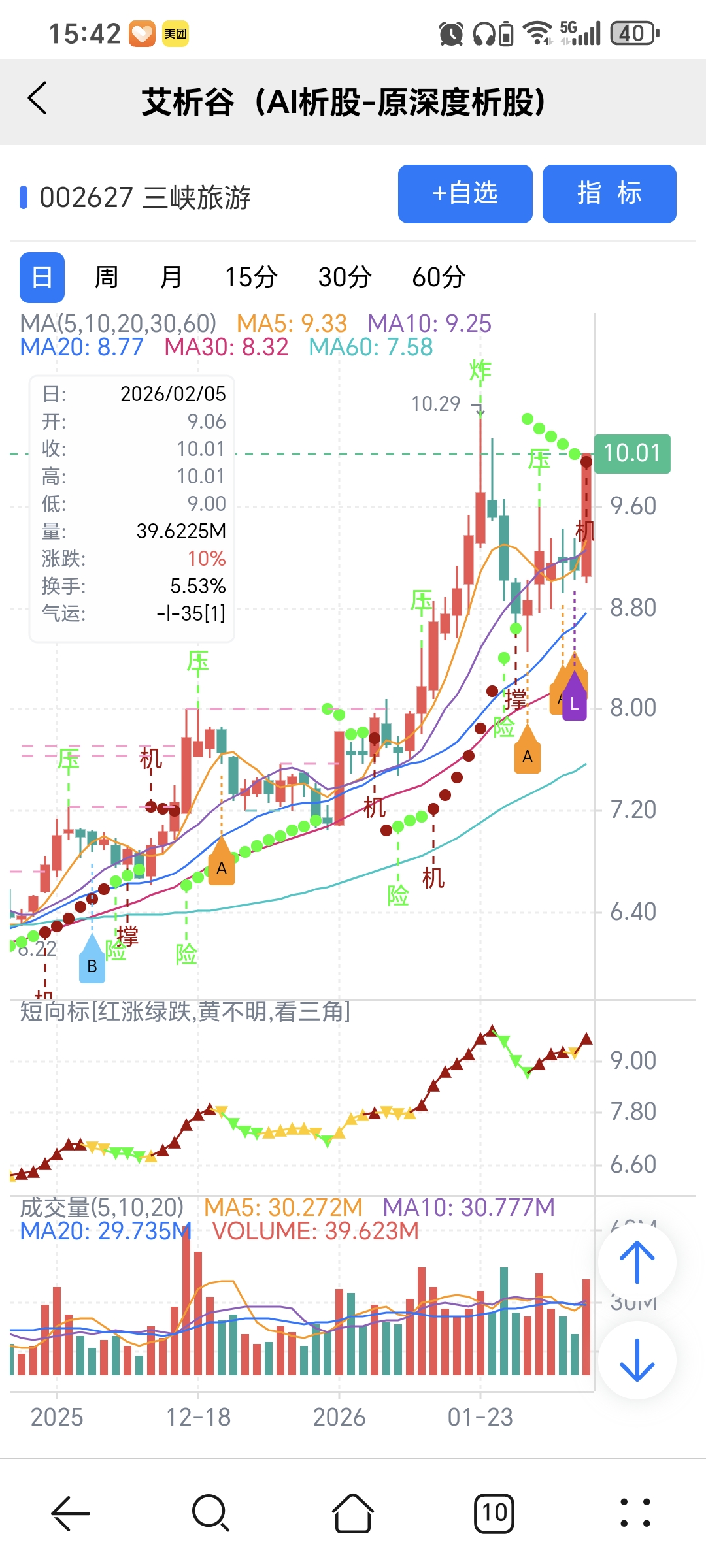 AI模型选股,量化指标识别关键点,简单技术分析确定买卖点,结合量化和人工综合运用,才能有优势。三峡旅游