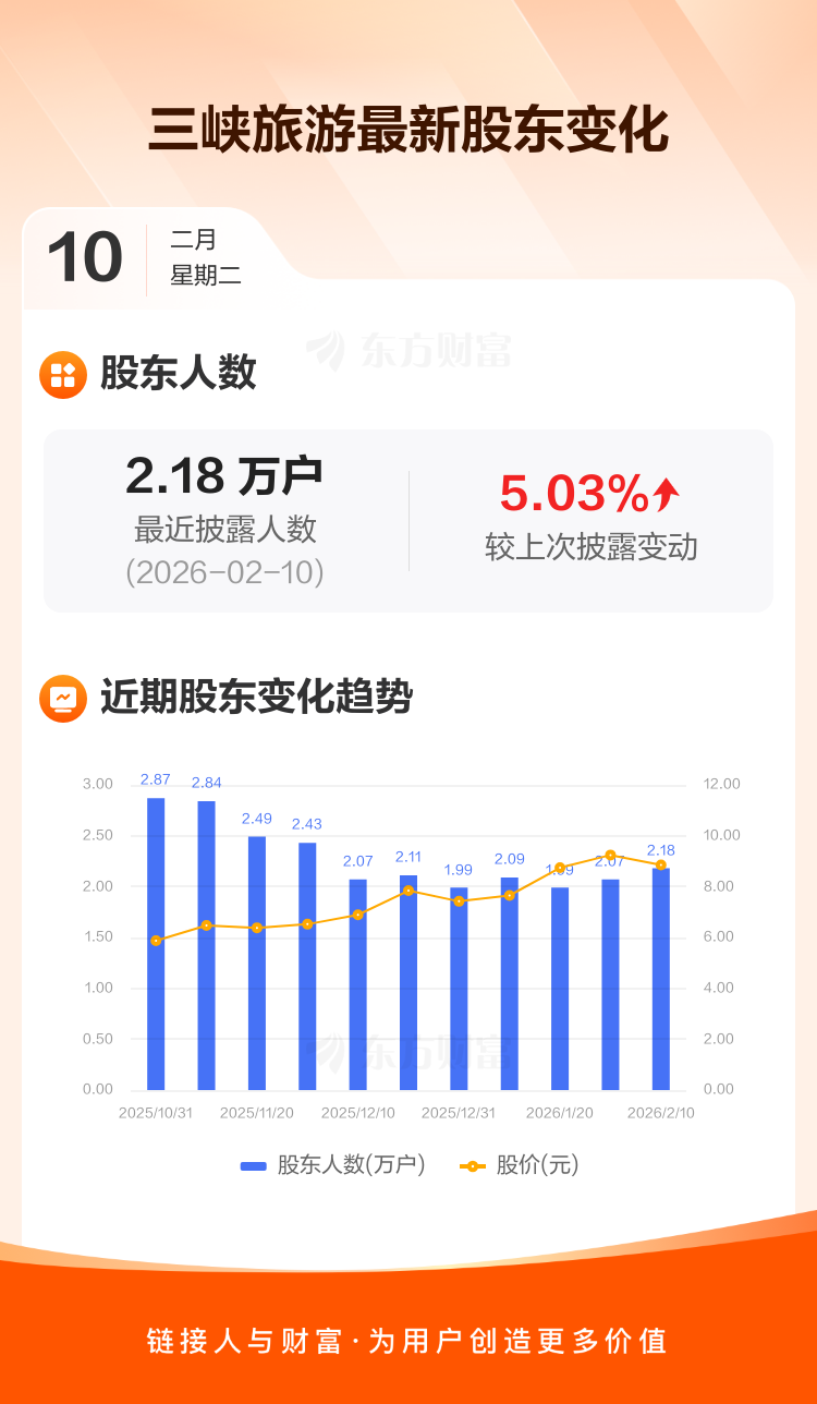 三峡旅游:截至2月10日最新股东户数2.18万户,较上期增加5.03%