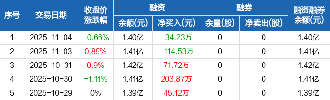 成都路桥:融资净偿还34.23万元,融资余额1.4亿元(11-04)