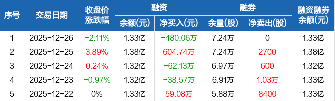成都路桥:融资净偿还480.06万元,融资余额1.33亿元(12-26)