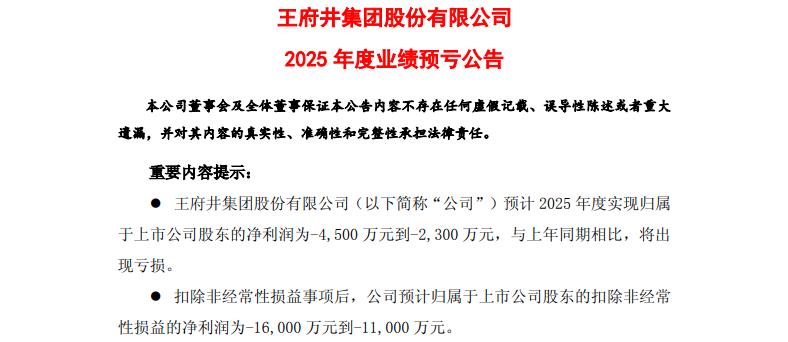 一、王府井,首亏。