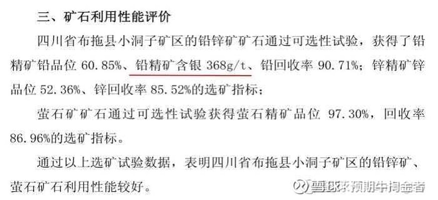 $成都路桥(SZ002628)$以下为上篇文章第二部分图片,按逻辑顺序整理。布拖县小洞子矿区的铅锌矿矿石通过可选性试验,获得了铅精矿铅品位60.85%、铅精矿含银368g/t、铅回收率90.71%;锌精矿锌品位52.36%、锌回收率85.52%的选矿指标;萤石矿矿石通过可选性试验获得萤石精矿品位97.30%,回收率86.96%的选矿指标。铅锌矿大部分都伴生银。