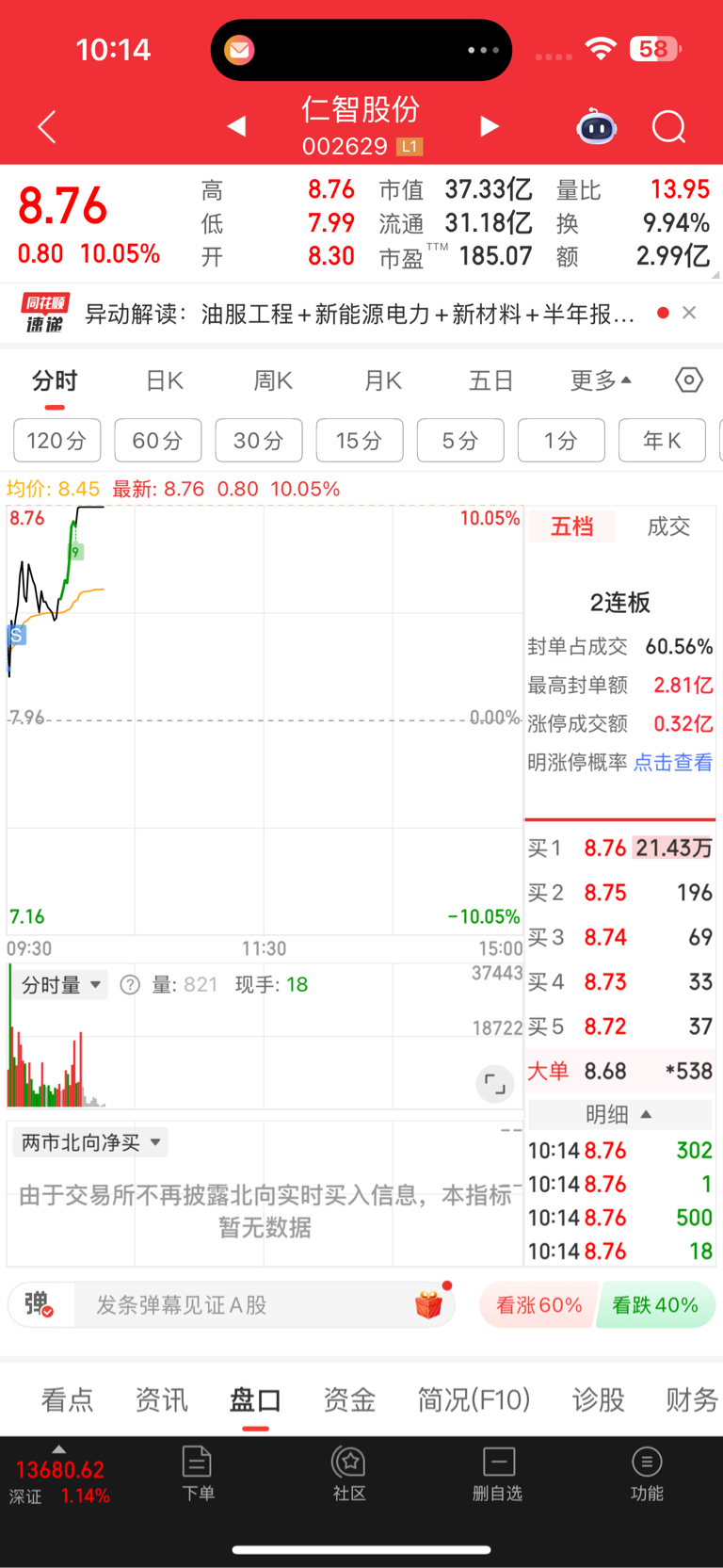 $仁智股份(SZ002629)$ 卖到今天最低点,你还有什么可讲的