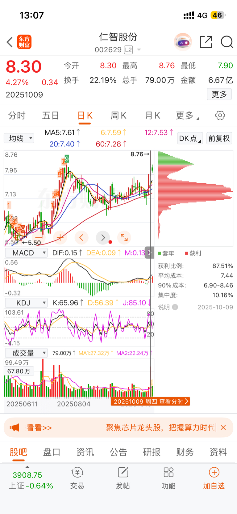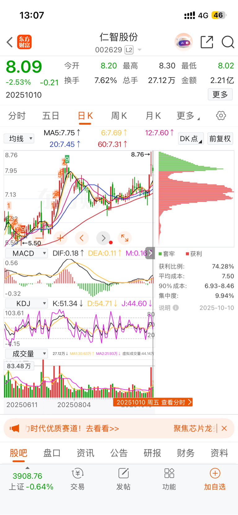 所以,我的预测是,会随着大盘整理后,与大盘一起创出新高。这个是最佳的,需要耐心。