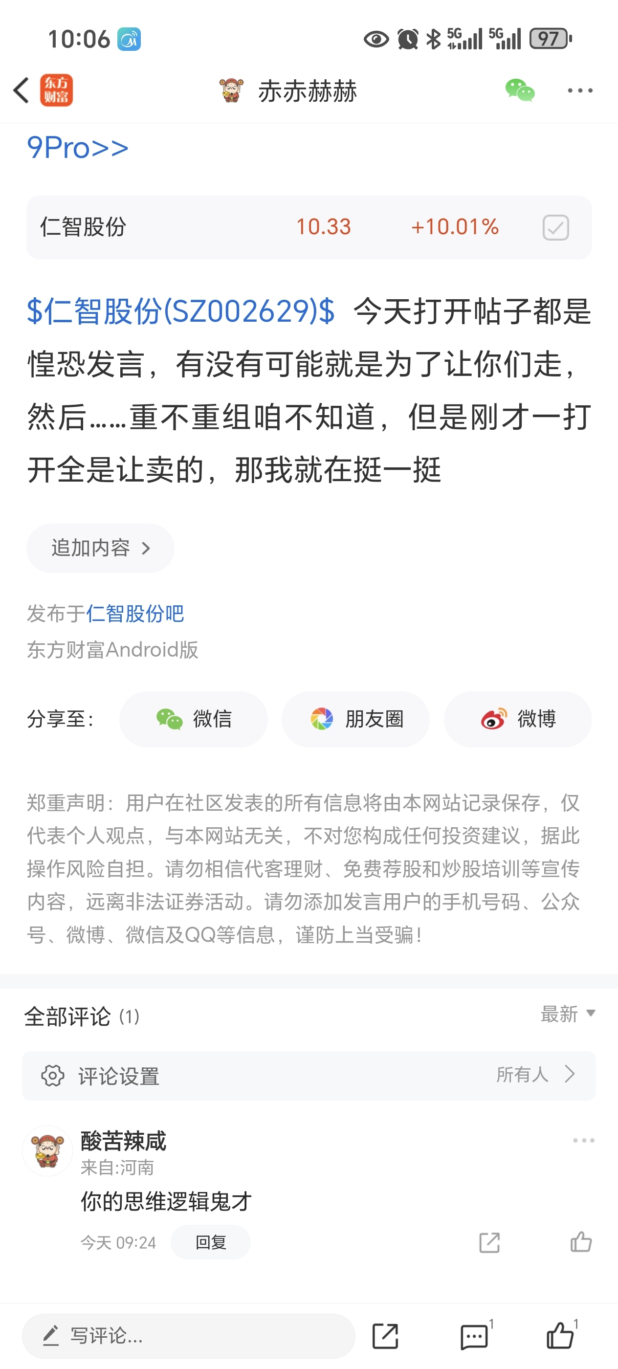 $仁智股份(SZ002629)$ 哈哈哈,没白挺