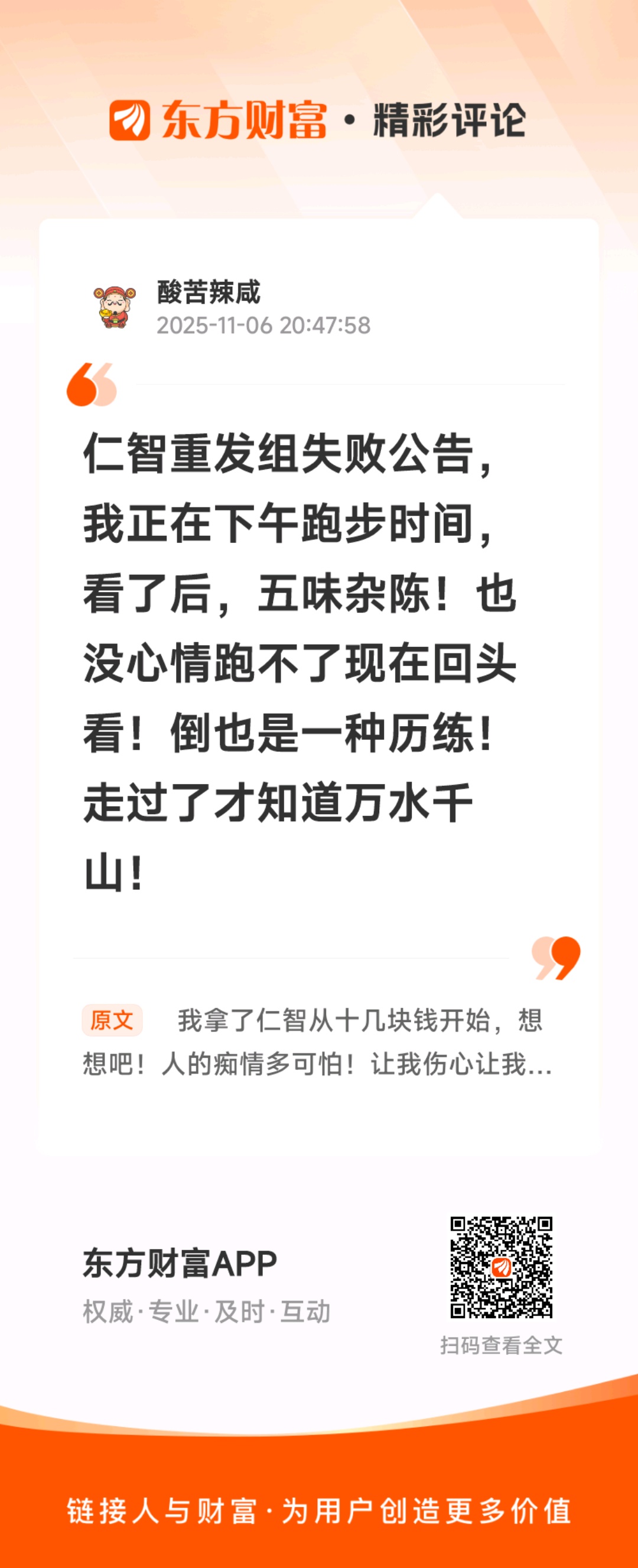 我拿了仁智从十几块钱开始,想想吧!人的痴情多可怕!让我伤心让我忧!如果它能再次不让持有者失望,绝对是双向奔赴!爱有多深,伤有多痛!各位把握好自己的认知!要么天堂要么地狱!
