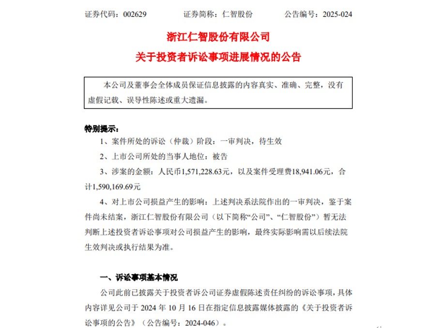【维权动态】受损股民一审胜诉,抓住黄金窗口期,诉讼维权时段:2020年8月28日至2024年3月25日之间买入002629仁智股份,且在2024年3月26日(含当日)之后卖出或继续持有者。以上索赔登记条件仅代表证威律所观点。不作为任何证券投资决策和买卖建议,最终以法院的认定结果为准。 了解更多可网查 证威律所 企业信息
