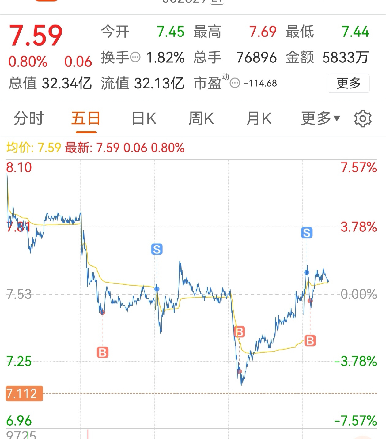 $仁智股份(SZ002629)$ 运气占比很大,小赚7个点,希望已经止跌了
