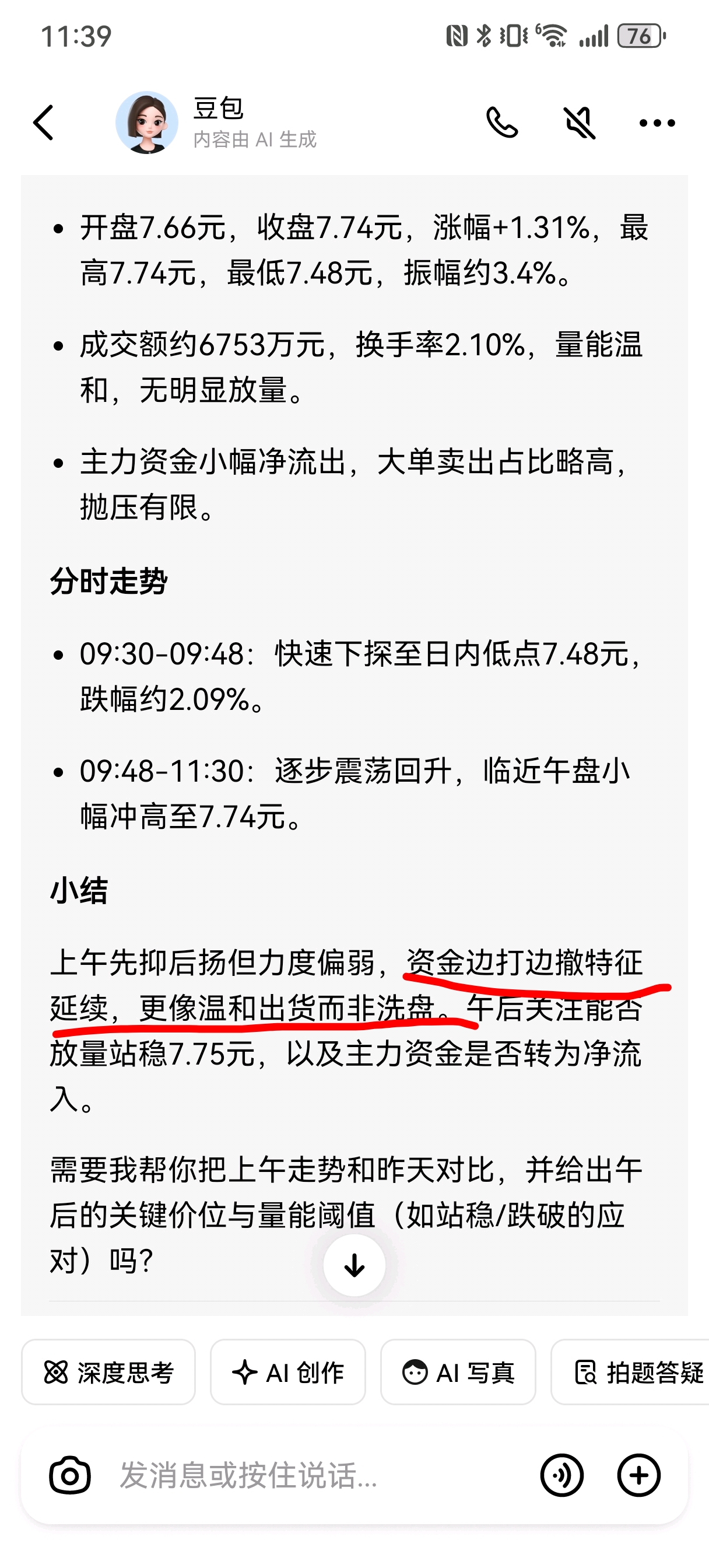 $仁智股份(SZ002629)$ 大单进小单出?豆包靠不靠谱啊?