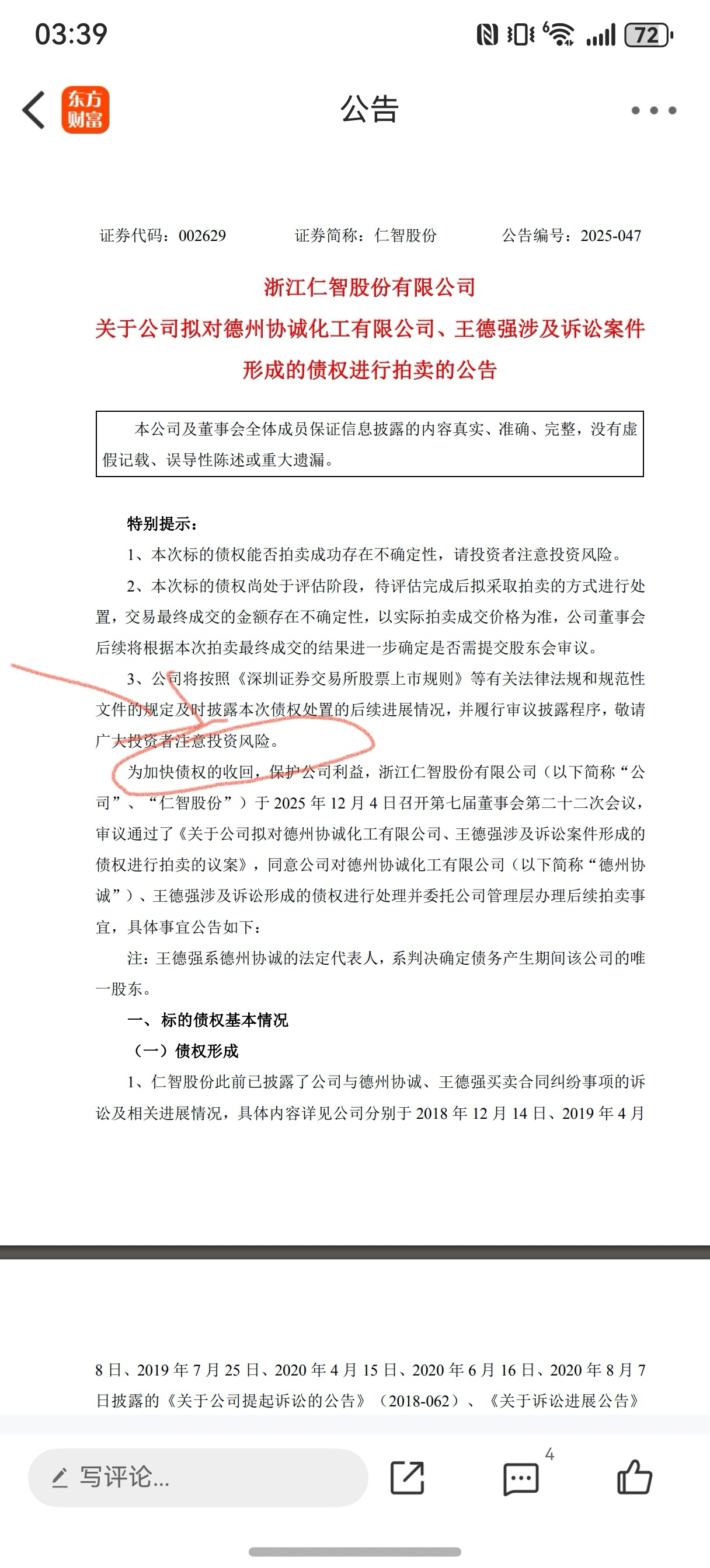 $仁智股份(SZ002629)$ 今天12.19了,商业拍卖也需要7天挂示。不考虑流拍也要考虑付款及交割吧?