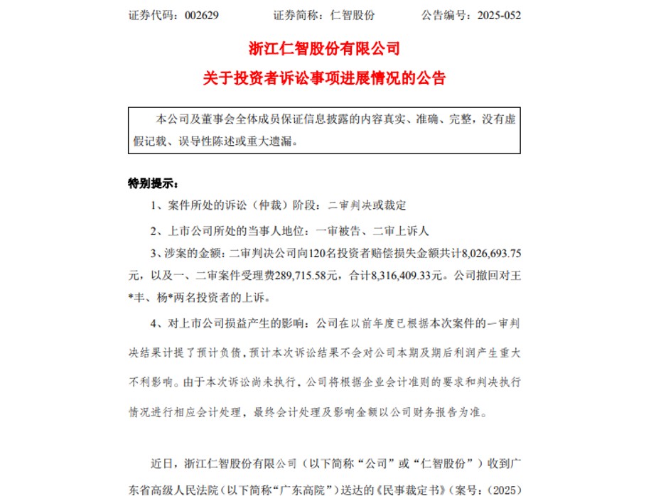 【最新】司法程序尘埃落定:二审判决确认赔偿责任!您是否在索赔范围内?维权时间节点至关重要!适格投资者条件:2020年8月28日至2024年3月25日之间买入002629仁智股份,且在2024年3月26日(含当日)之后卖出或继续持有者。以上索赔登记条件仅代表证威律所观点。不作为任何证券投资决策和买卖建议,最终以法院的认定结果为准。 了解更多点头像看企业信息 或 查看 证威律所 相关信息