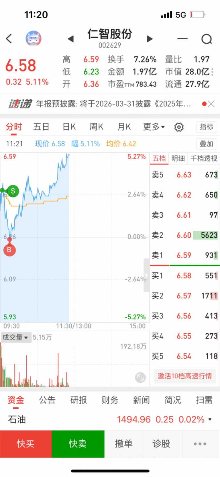 $仁智股份(SZ002629)$ 今天做了一个完美的T