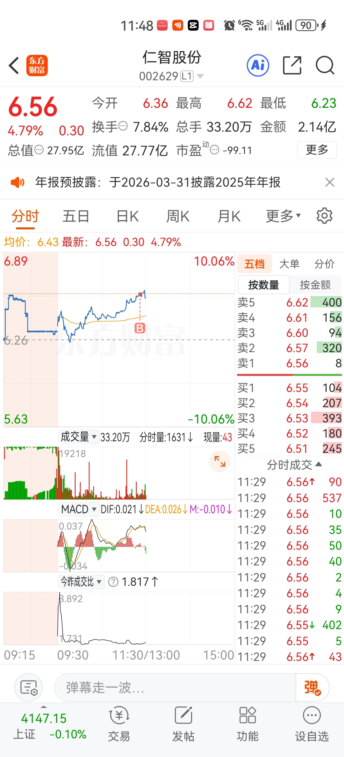 $仁智股份(SZ002629)$ 明知道主力的意图,还是没管住手,真失败。今天如果不涨停,或者我亏钱了,明天就会是低开2点到5点。手贱。
