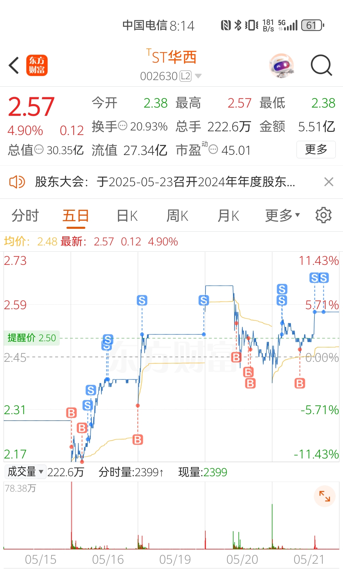 $ST华西(SZ002630)$