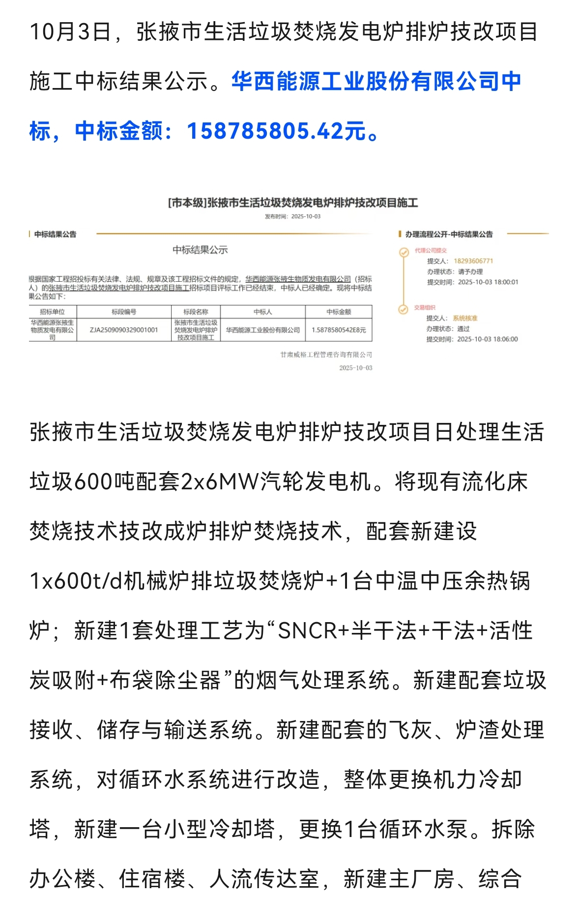 $ST华西(SZ002630)$ 中标电厂1.58亿